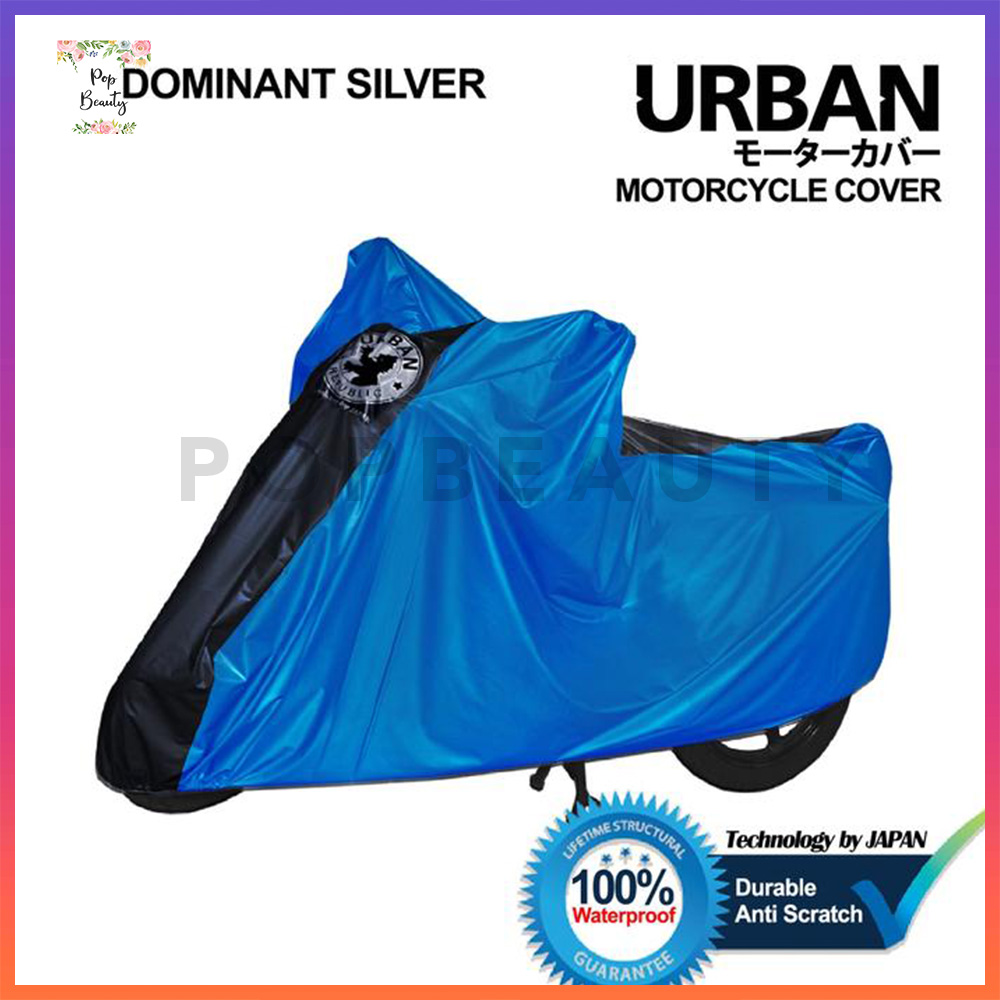 Cover motor merk URBAN ukuran jumbo cocok untuk motor Ninja 250, Vixion, Byson, CB150R, Tiger, Megapro, Verza, Scorpio, PCX, NMAX dll. Cover motor ini cocok untuk melindungi motor Anda, terbuat dari bahan 100% waterproof, tidak rembes sama sekali mekipun diguyur hujan sangat lebat. Cover ini tahan panas juga melindungi motor dari paparan sinar matahari yang terik sehingga cat motor tidak akan mudah pudar. Bahan tebal, lentur dan tahan lama. Warna menarik dengan kombinasi hitam silver dan silver hitam.