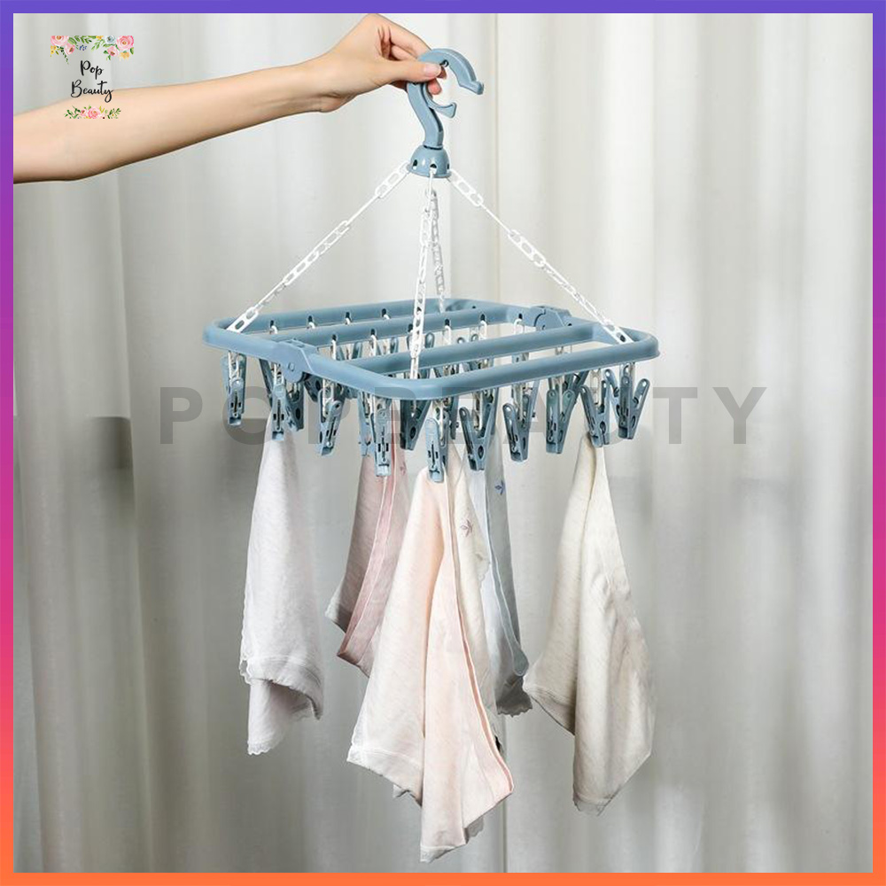 Jemuran Baju Bayi Kaos Kaki Lipat terdiri atas 32 buah jepitan, dengan desain kotak dan mudah dilipat sehingga mudah disimpan saat tidak digunakan. Jemuran ini cocok untuk menjemur pakaian yang berukuran kecil-kecil seperti pakaian dalam, baju bayi, atau kaos kaki.