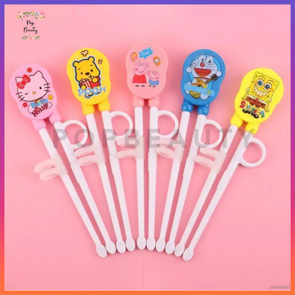 Sumpit Anak Alat Belajar Makan dengan Karakter Lucu didesain dengan kartun yang lucu dan menggemaskan untuk anak-anak belajar menggunakan sumpit. Memiliki ruas pada bagian atas dengan karet lubang untuk ibu jari, telunjuk dan jari tengah agar memudahkan genggaman pada sumpit.