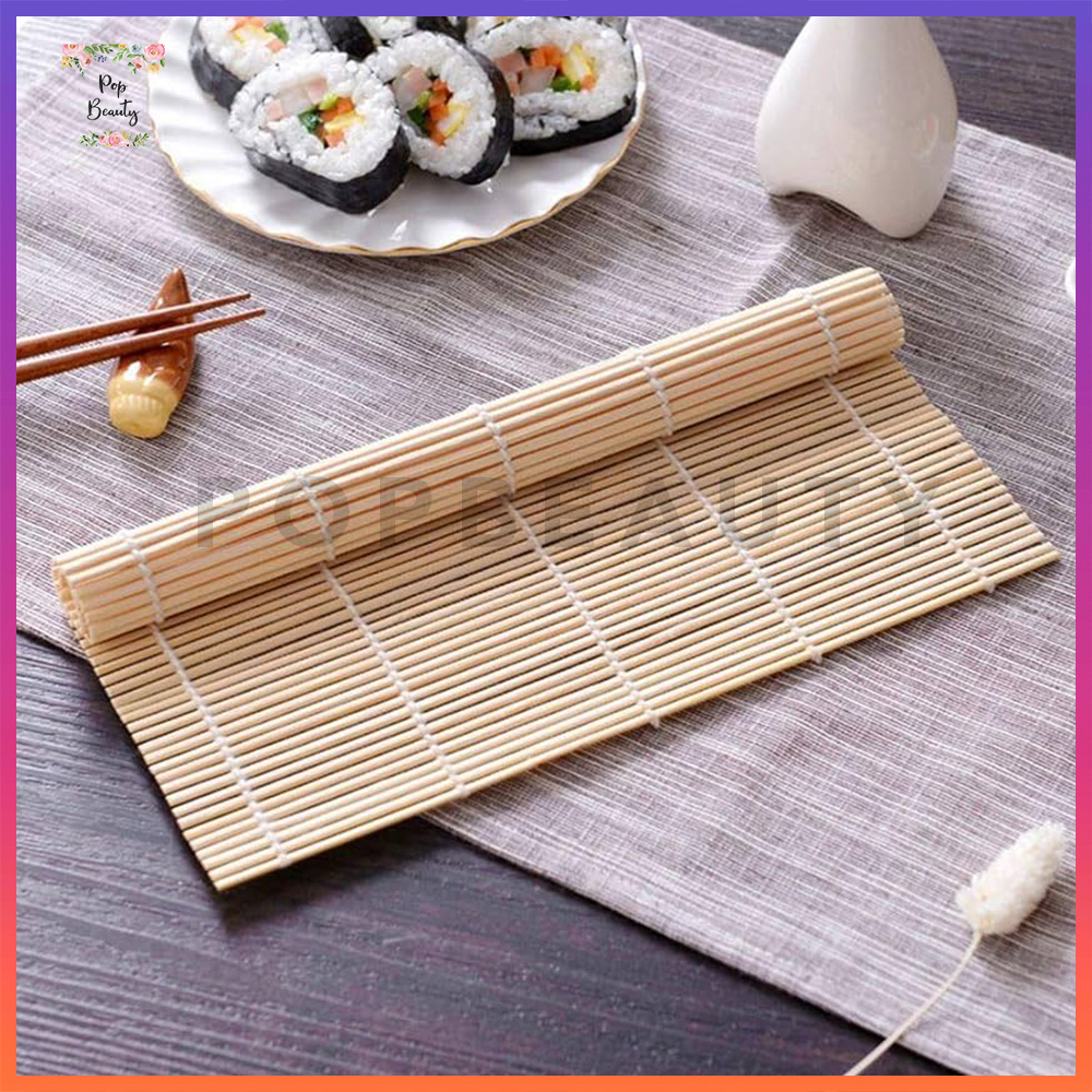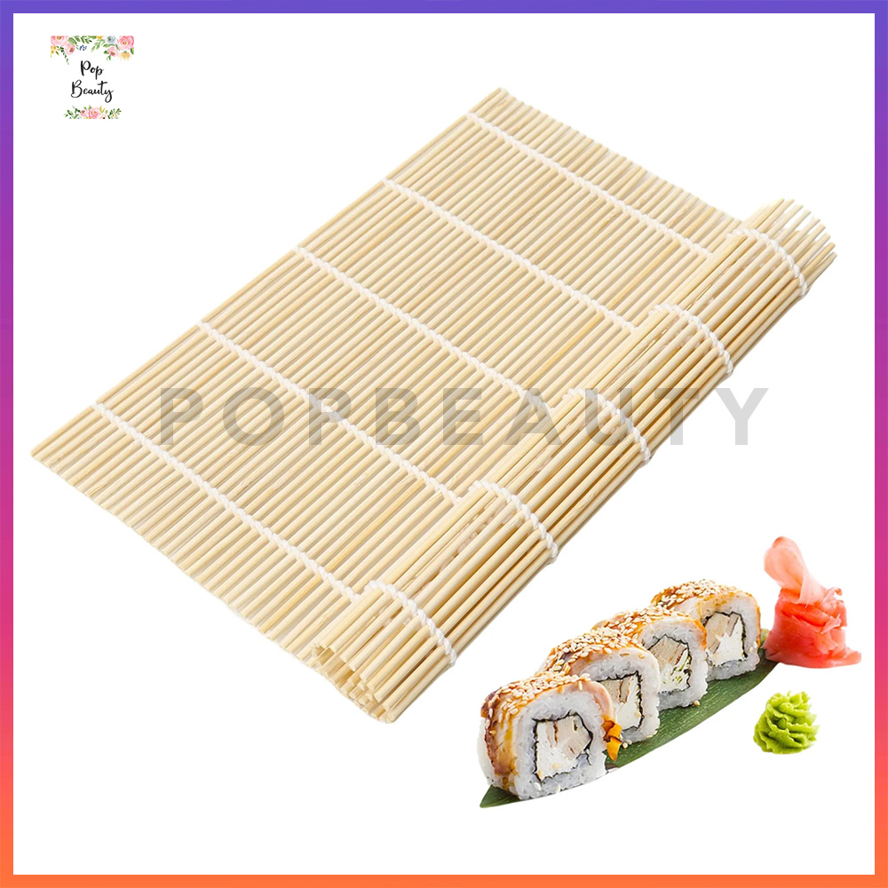 Sushi Rolling Mat atau Tikar Penggulung Sushi merupakan alat untuk membantu Anda menggulung sushi dan gimbab sehingga sushi atau hasil gulungan Anda akan tampak rapi dan tidak belepotan. Terbuat dari bahan bambu alami yang ramah lingkungan dan tentu saja foodgrade. Perawatannya mudah, cukup bersihkan dan keringkan supaya rolling mat tidak mudah berjamur.