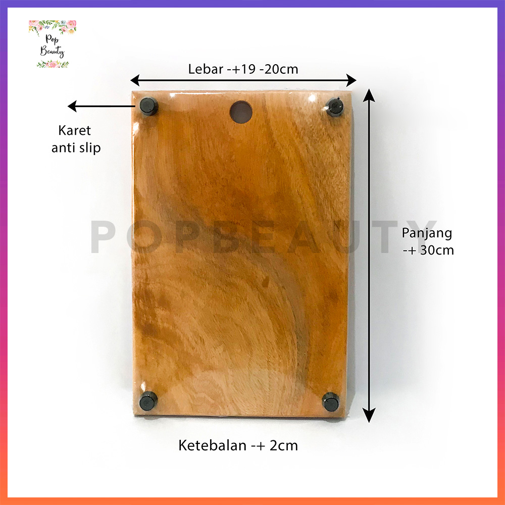 Talenan Akasia : ((+/- 19 cm-20 cm) x 30 cm x 2 cm; berat 1.500g, warna relatif gelap.