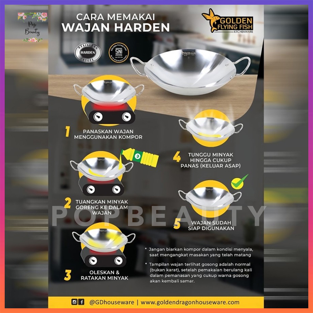 Wajan Stainless Steel Golden Flying Fish merupakan wajan yang terbuat dari bahan dari stainless steel food grade keluaran terbaru dari Golden Dragon yang aman untuk memasak tanpa perlu khawatir akan residu dari pelapis anti lengket seperti pada wajan teflon.